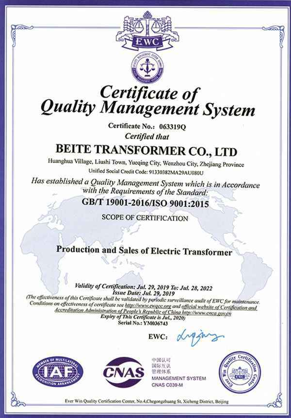 质量管理体系认证证书-英